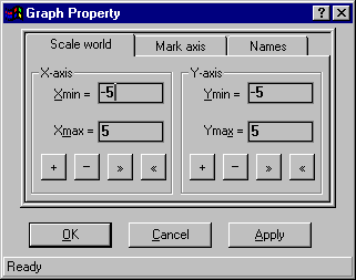 кнопкам со знаками “+” и “-”интервалы изменения переменных