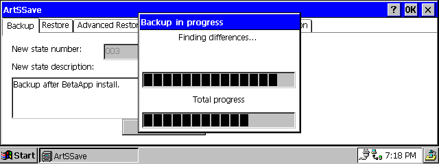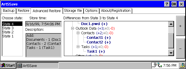Допустим, что в течение некоторого времени прошедшего со времени установки "BetaApp" в данные устройства вносились изменения. Для примера мы внесли следующие изменения: добавили документ, два контакта и одну задачу. Только чтобы показать какие изменения были внесены мы проведем очередную операцию резервного копирования, хотя делать это необязательно. Новое состояние устройства будет сохранено под именем State 4.