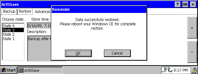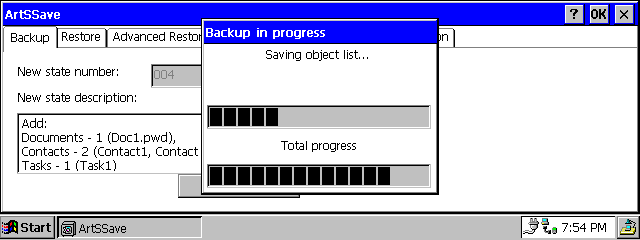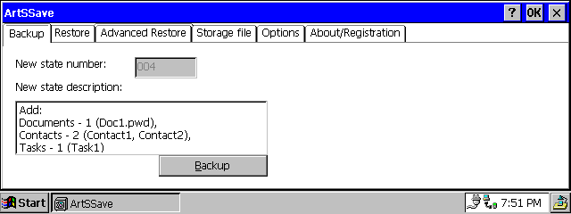 Этот пример может быть интересен владельцам устройств PPC. Как известно эти устройства, в большенстве своем, не имеют встроенного приложения Windows Explorer. Следовательно, при полном сбросе устройства произошедшем, например, из-за аварии питания и отсутствии возможности подключиться к настольному компьютеру, пользователь не может восстановить потерянные данные даже если их резервная копия хранится на карте памяти. Ниже описан порядок восстановления данных при использовании для этого программы ArtSSave.