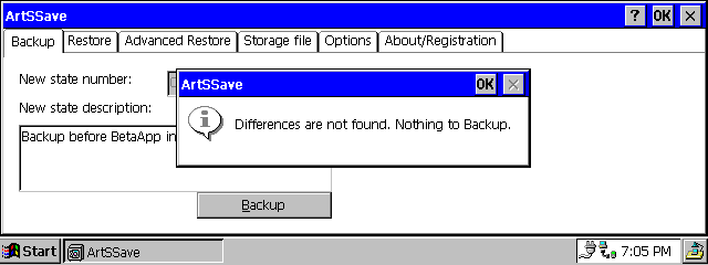 Из рисунка видно, что со времени проведения передыдущей операции резервного копирования никаких изменений в устройстве не выявлено. Еще раз отметим одно из положительных качеств ArtSSave - данные в хранилище резервных копий не дублируются.