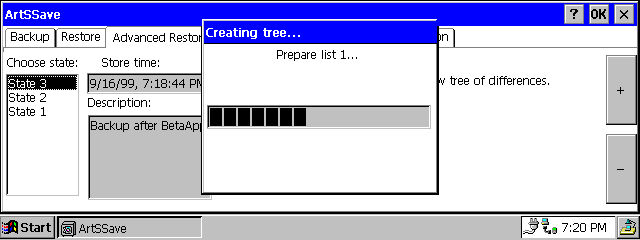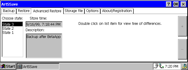 Теперь посмотрим какие данные были сохранены программой во время последнего сеанса резервного копирования. Для этого переходим в закладку Advanced Restore, выбираем из списка состояний State 3 и производим по нему двойной щелчек пером.