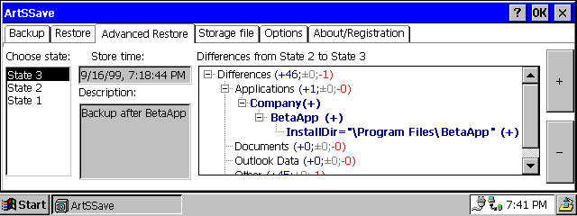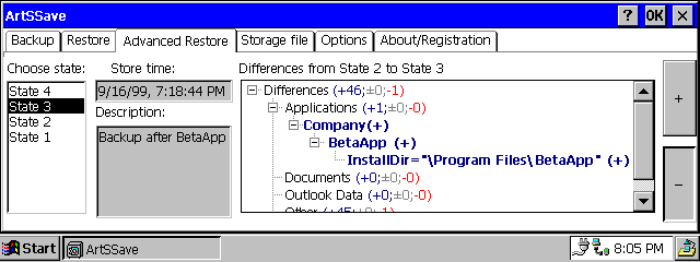 ArtSSave построит дерево различий между выбранным (State 3) и предыдущим (State 2) состояниями, т.е. между состояниями до и после установки приложения "BetaApp".