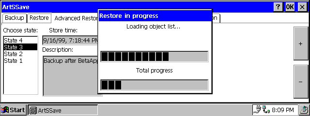 Опять переходим в закладку Advanced Restore, выбираем из списка состояний State 4 и производим по нему двойной щелчек пером. Мы увидим, что программой эти 4 объекта были сохранены.