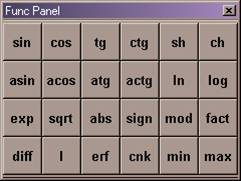 Func Panel is used to insert notations of some commonly used math functions.