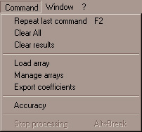 In Calc window this menu contains the following items.