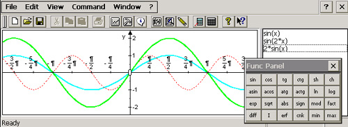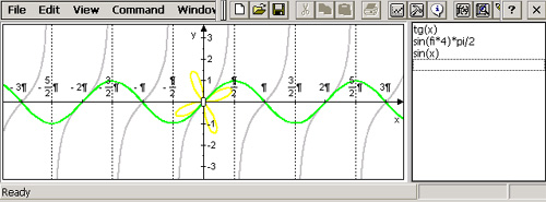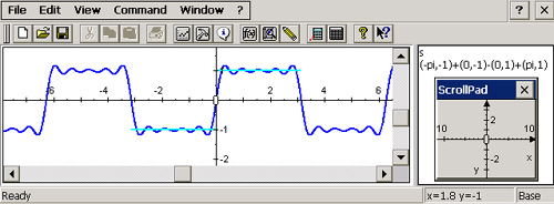 The graph of a partial sum s of Fourier series of the function f(x)={-1, -p<=x<=0 ; 1, 0<=x<=p}