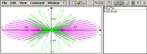 Set of level lines for F(x,y)=y*(cos(x))^2-x*(cos(y))^2. Level values are ±0.5,±1,±2,±3 |